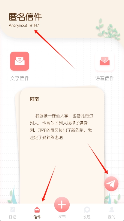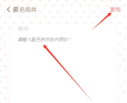 在匿名信件编辑页面填写内容后,点击右上角的发布按钮就能完成操作。