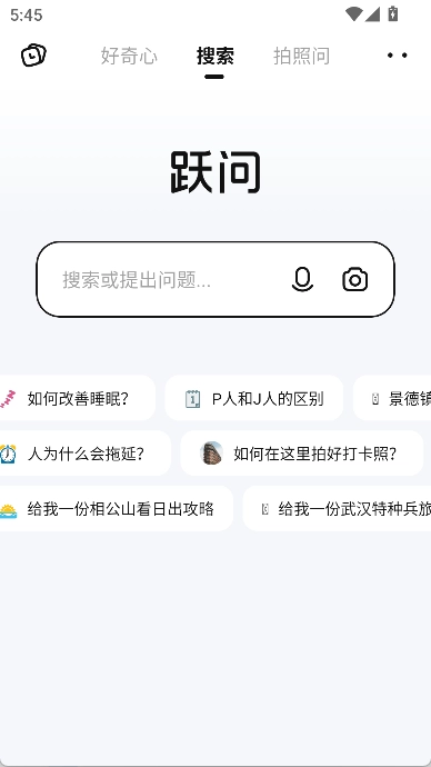 跃问智能问答,支持文字、图片、语音多种形式输入,通过全网搜索快速获取全面准确的答案,为您带来智慧便捷的体验。