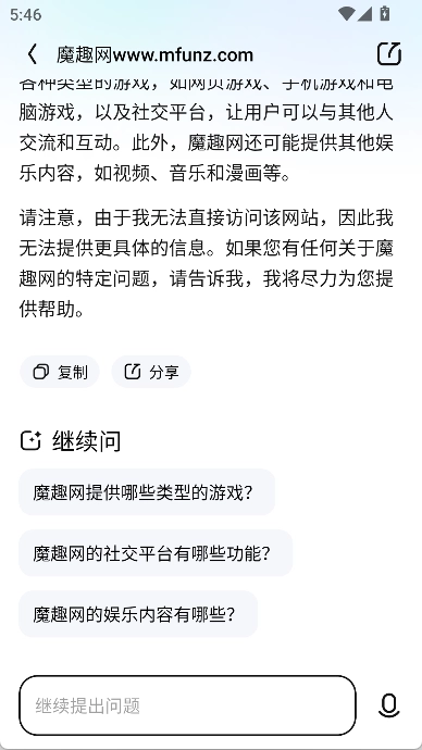 跃问是一款AI问答应用,无论你想查找旅游攻略还是搜索各类知识,它都能为你提供满意的答案。此外,跃问还支持语音识别与自动翻译功能,同时能辅助你进行写作创作,集智能问答与办公助手功能于一身。快来魔趣网获取最新版本体验吧!