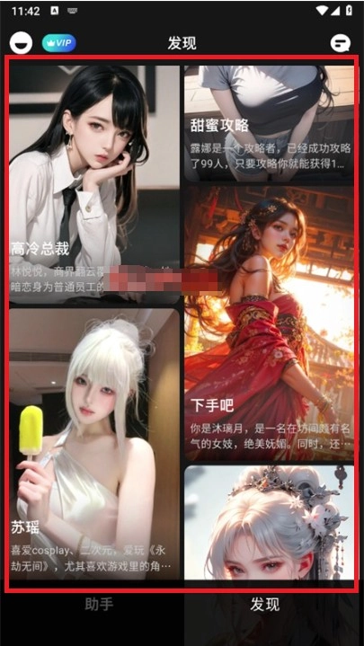 在“发现”页面浏览不同风格的AI角色,增加互动选项。