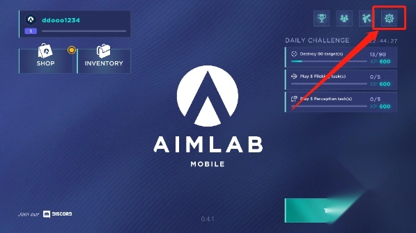 首先打开瞄准实验室,进入后点击右上角的设置按钮;