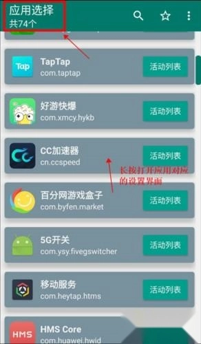 在本站完成安装并创建快捷方式后,打开进入界面如以下图示。点击左上方区域可实现返回操作并刷新列表;点击目标程序或长按该程序,即可打开应用对应的设置界面。