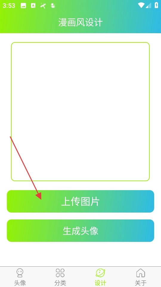 2、提供头像分类浏览,设计模块能上传图片,生成漫画头像,具备保存分享功能。
