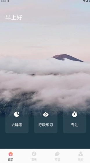 首页设有“去睡眠”(睡眠计时与引导)、“呼吸练习”(科学调节呼吸节奏)、“专注”(屏蔽干扰)等核心功能模块,所有功能均支持免费使用,助力用户高效管理睡眠与放松需求。