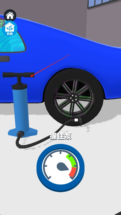 3、当涂鸦完成后,去寻找打气泵,握住打气泵的把手,依照提示来操作打气泵,为汽车轮胎进行充气,至此整个嘻哈涂鸦流程就全部完成了。