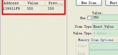 回到游戏界面,消耗一定数量的太阳,使其数值变为350,接着在Cheat Engine里将Hex值修改为350,再点击“Next Scan”按钮。