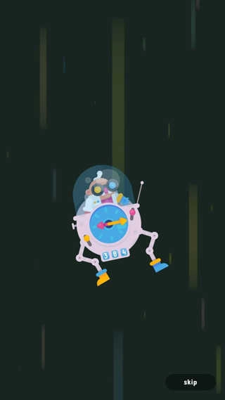 当玩家第一次打开这款游戏的时候,会看到一个非常可爱的博士正坐在一个钟表机器人的驾驶舱里旋转,这其实只是一个开局动画,如果不想看点击屏幕右下角跳过键就可以了。