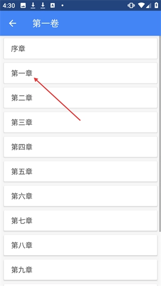 在【第一卷】页面中,点击【第一章】。