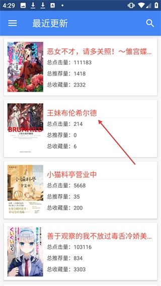在最近更新的列表里找到【王妹布伦希尔德】,然后点击进入。
