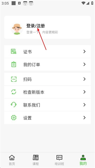 在个人页面,点击登录注册选项,进入登录页面。
