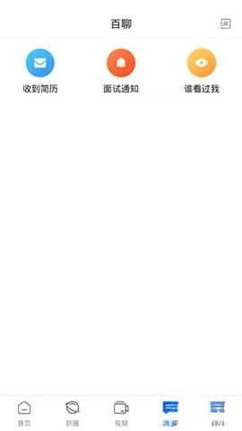 消息板块包含收到简历、面试通知和谁看过我三个主要部分。用户曾联系过的求职者信息,同样能在这里进行查看。