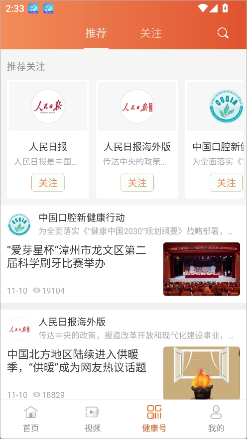 “健康号”作为人民健康App的专业内容聚合平台,已吸引全国医疗机构、行业专家及专业媒体账号入驻。