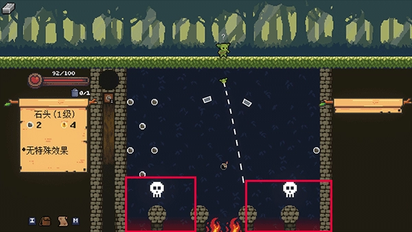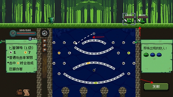 领取完奖励后,进入下一关的方式依旧是弹珠形式,中间的火炬无法穿越,并且会扣除血量,我们需要选择左侧或右侧的入口进入。