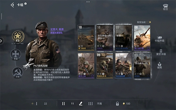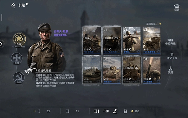 无金卡可玩机枪或步枪队。野排建议带机枪,固排美军22可以出机枪也可以速美伞。由于美军步兵价值高,一本出四队过慢,尽快上二本是比较好的选择。