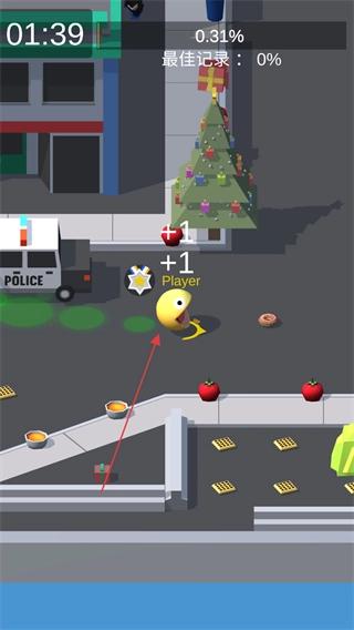 操控玩家角色移动,吞噬目标可获得2点积分,同时提升进度百分比,以此推进游戏进程。