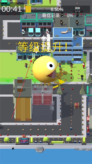 等级提升后角色体型增大,能够吞噬更多目标,进度百分比也随之快速增长到8.50%。