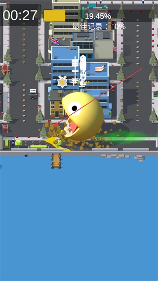 操控角色吞噬建筑之类的目标,进度百分比已攀升至19.45%,要在倒计时结束前刷新记录。