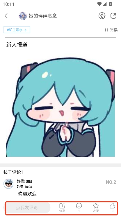 2. 进入帖子后,能够进行评论、点赞、转发、收藏等互动操作。