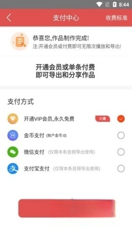 完成支付后即可导出音频。