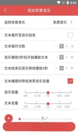 合成时可设置背景音乐的音量等参数。