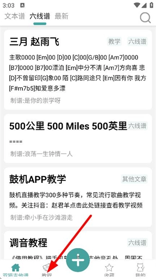 在小鹿吉他谱软件的底部,点击教程选项,即可进入教程页面。