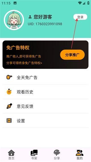 进入轻漫岛首页,点击底部我的,进入个人页面。