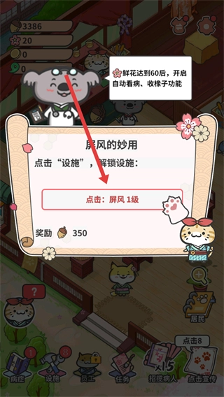 功能菜单为您提供实用助力,能简化资源获取与设施升级的流程,让您无需花费大量时间进行重复操作,从而专注于享受医馆建设与救治小动物的核心乐趣。