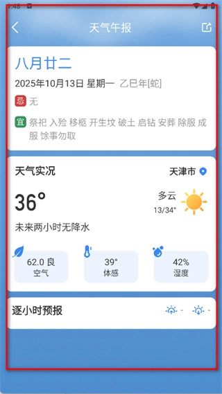 后台占用内存小日常使用耗电低,弱网环境下可查看缓存的天气数据,避免因网络问题无法获取信息确保随时能查天气。