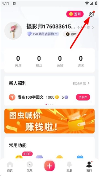 在个人主页,点击右上角的设置图标,即可进入设置页面。