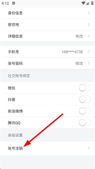 在设置界面,点击账号注销选项,即可进入注销安全验证界面。