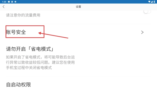 在设置页面中,找到并点击“账号安全”选项,即可进入账号与安全界面。