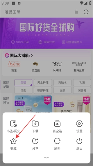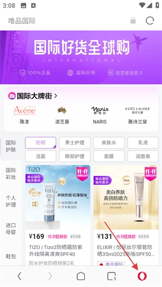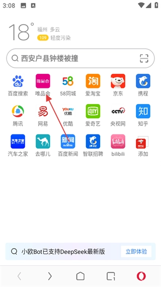 打开欧朋浏览器后,在首页找到并点击唯品会,就能进入唯品国际页面。