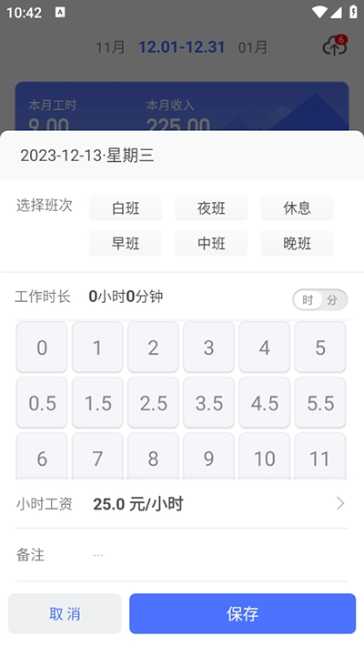快速记录工时的方法:先设定好每小时的工资标准,之后每天把实际工作时长记录下来,系统就能自动为您核算出对应的工时收入啦。
