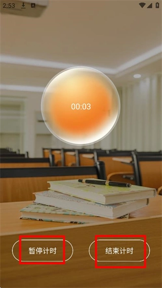 在专注计时界面,你能够通过点击暂停计时或者结束计时的按钮,来对专注时长进行控制。