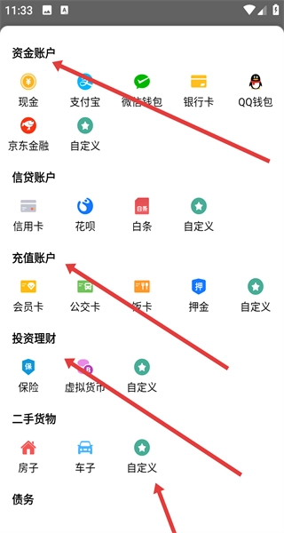 在账户选择页面,你可以根据自己的需求挑选资金、信贷、充值等不同类别的账户,像现金、信用卡这类都能导入添加,这样就能准确地对记账的资金来源进行分类了。
