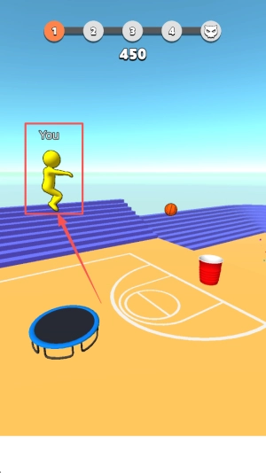 熟悉基础操作:学会用滑动来控制小人移动(确定蹦床的落点位置)以及完成投篮动作的基本互动方式,清楚“精准投进篮筐”这一核心任务。