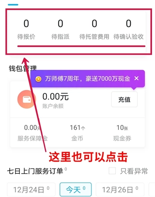 【服务中】=指派师傅成功,师傅开启服务。