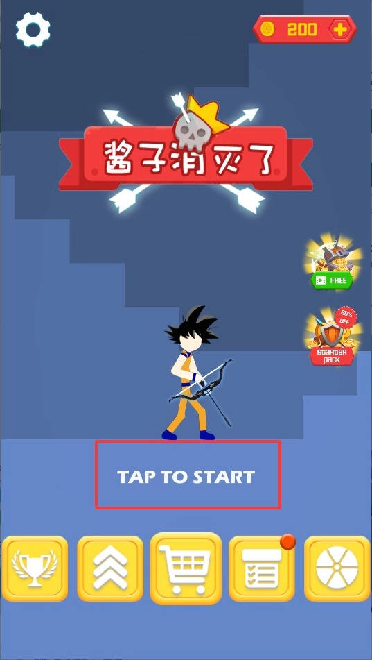 游戏启动后,点击屏幕中央的开始按钮,角色便会自动进入射击准备状态,此时屏幕上方会显示当前关卡还剩余的目标数量。