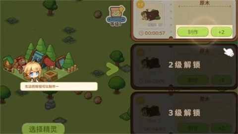 拥有伐木场后,玩家可选择精灵进行原木的快速生产。