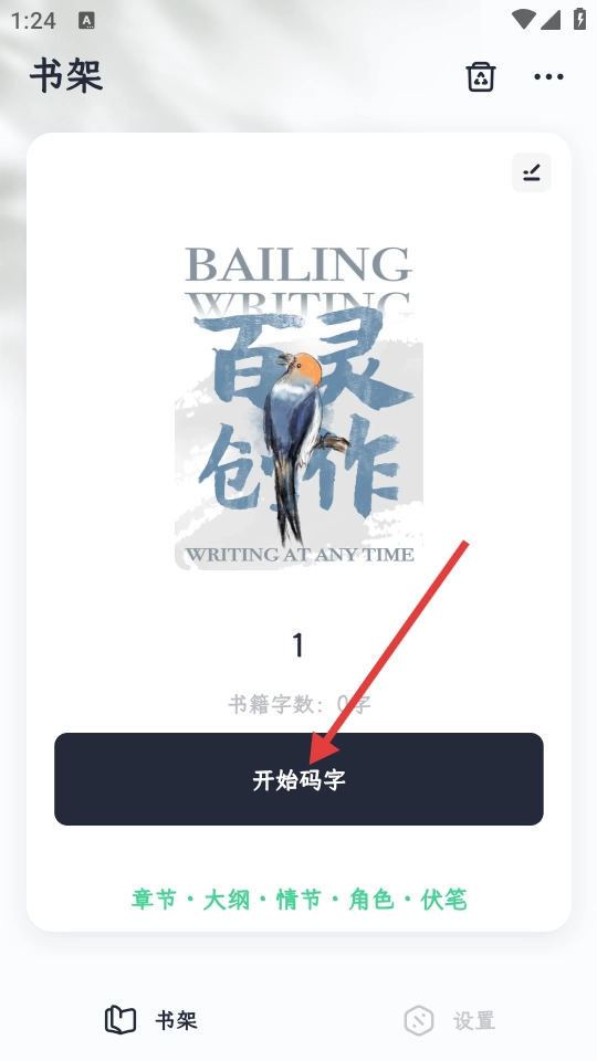 创建好书籍后,点击【开始码字】按钮,即可进入码字页面。
