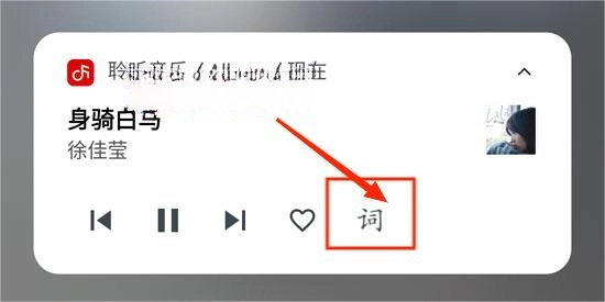 下拉通知栏,在聆听音乐的通知栏,点击歌词按键。