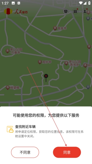 权限申请页点【同意】,允许获取位置。