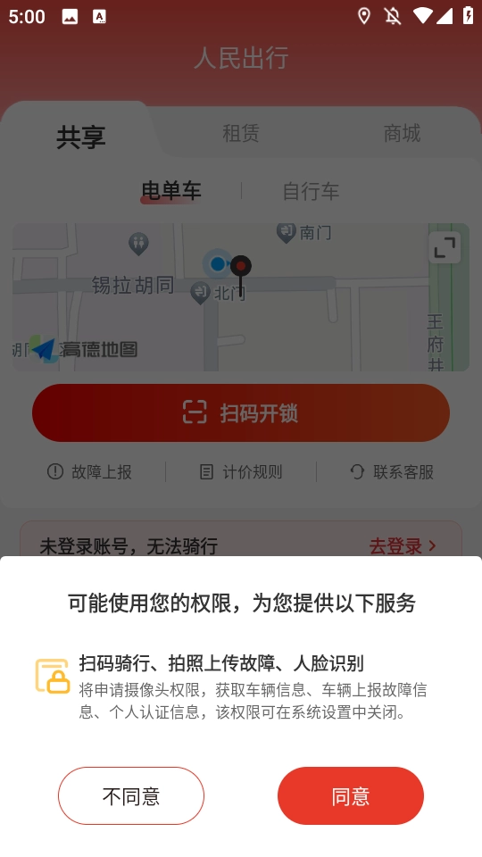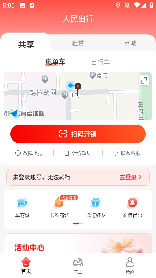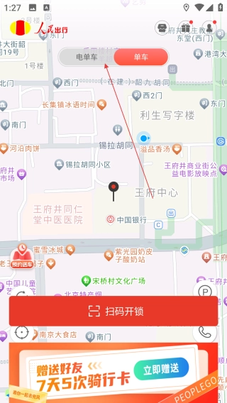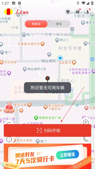 点【扫码开锁】,扫描车辆二维码用车。