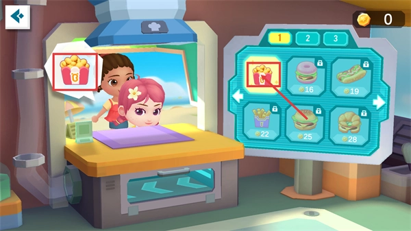 在点餐界面选择【爆米花】,它是当前已解锁的可制作食物,选中后就能启动对应的制作流程,推动餐食制作任务的进行。
