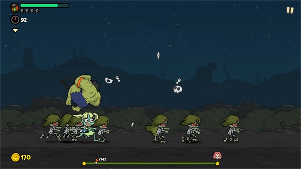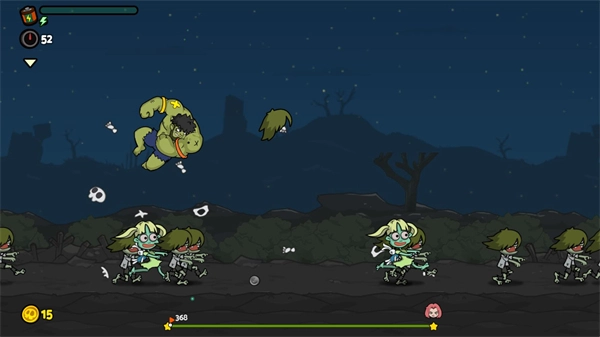 游戏中的弹射机制颇具趣味,把角色发射出去后,点击屏幕就能让其下落砸向僵尸。借助持续的弹跳能推进到更远的地方,逐步升级道具可解锁更强劲的效果。在不断前进的过程中击败各类僵尸敌人,完成挑战任务还能收获丰厚奖励,快来一路向前,体验最有意思的闯关乐趣吧。