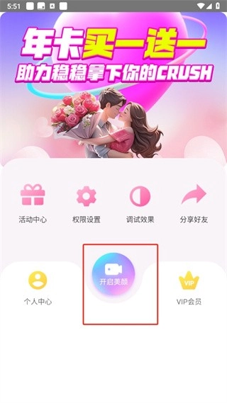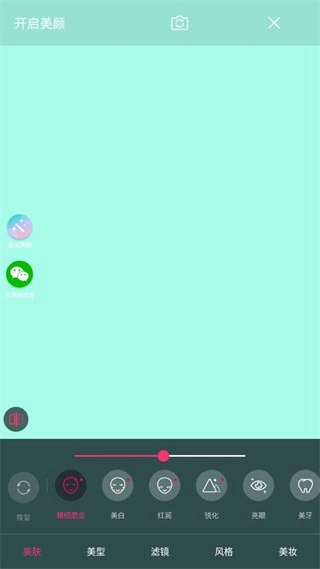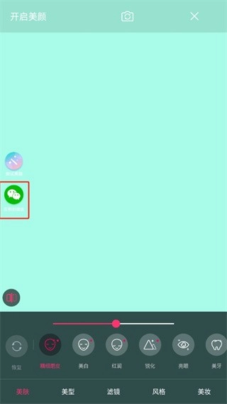 首先打开微信视频美颜大师软件,进入首页后点击【开启美颜】按钮。