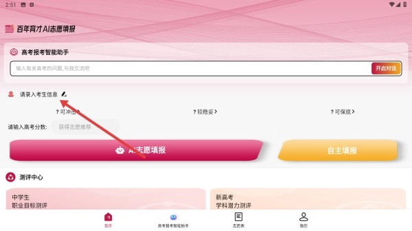 百年育才AI志愿填报是一款优质实用的志愿填报辅助工具,它能为用户提供专业的填报指导,帮助大家深入了解各类名校资源与志愿填报的相关知识,欢迎大家前来体验使用。