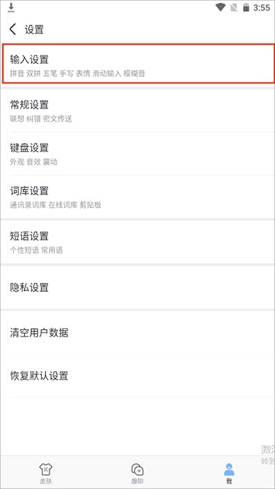 按照上一个教程的操作步骤,同样进入设置界面,接着点击“输入设置”选项。