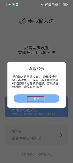 安装手心输入法后,进入软件首页,点击进行输入法切换。