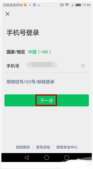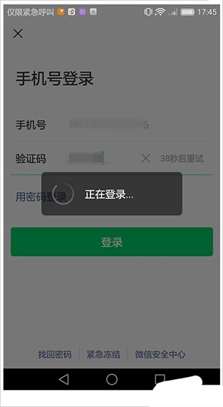 然后我们开始登录第二个微信号,我是通过手机号进行登录的。